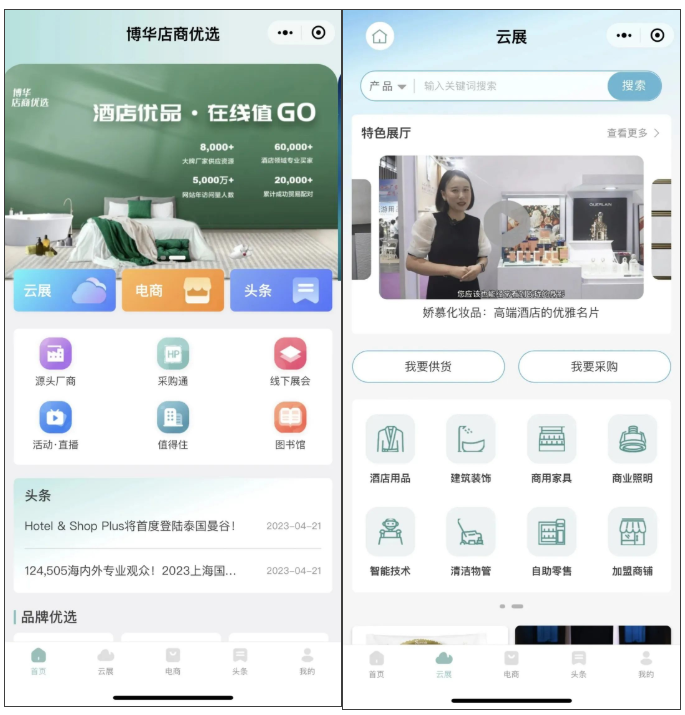 展會推出“博華店商優選”小程序,涵蓋線上商城、在線云展、社群私域營銷、貿易配對、知識分享以及直播課堂等特色功能及服務,為酒店及商業空間行業供需雙方提供全方位的營銷和交易撮合服務,實現展會一年365天“在線”!
