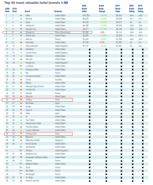 * Hilton remains world’s most valuable hotel brand, up an impressive 35%