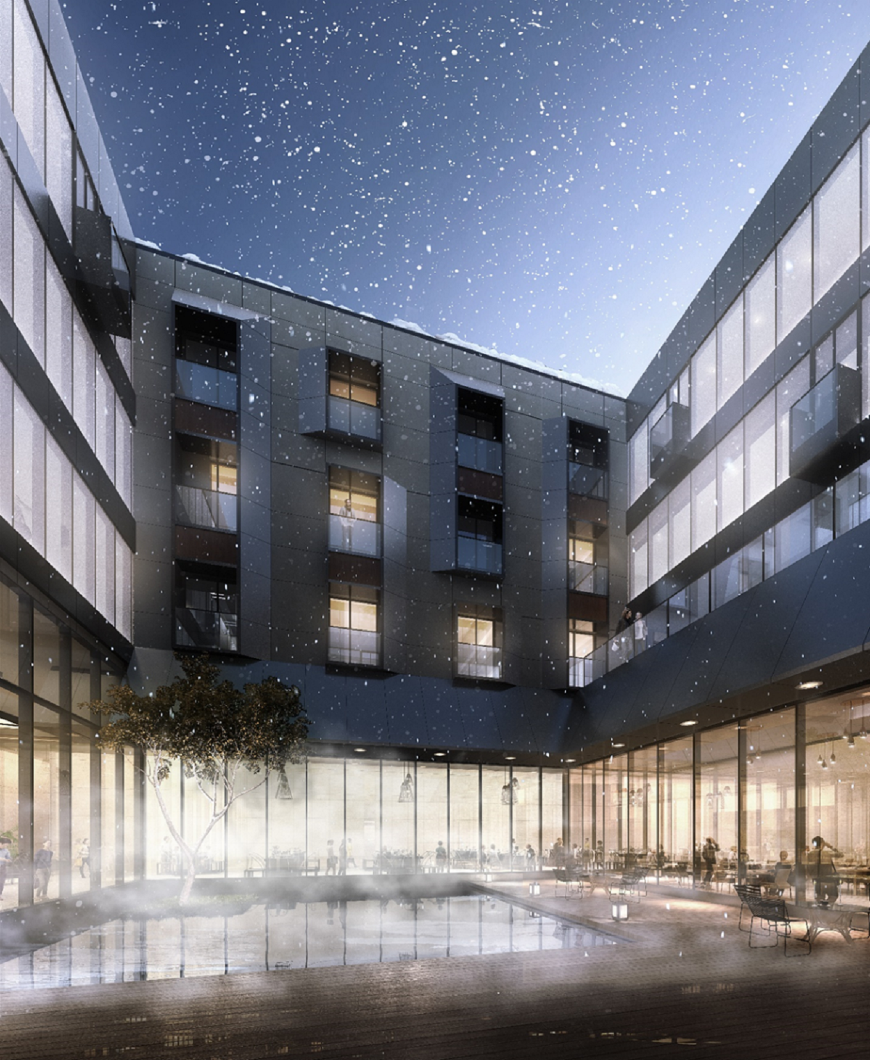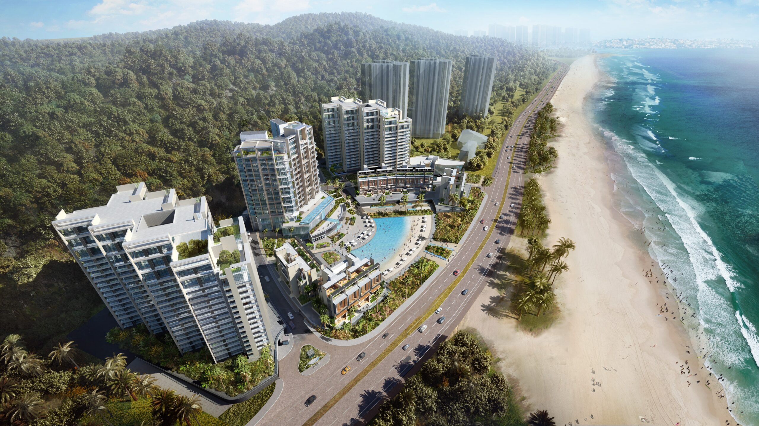 建筑群通過優美的線條和逐漸變細的末端,與錯落有致的房間和波浪形陽臺相得益彰,營造出寧靜,堅固和透明的感覺。