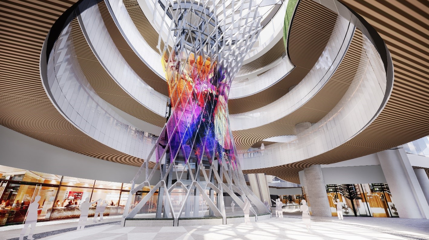 Menara購物中心的公共空間位于15,000平方米的中心區域,這是神圣且雄偉的“榕樹”抽象雕塑框架。榕樹在東南亞地區寓意著一個村莊的核心,為聚集的村民們提供樹蔭,Menara購物中心的中庭設計靈感由此而來。