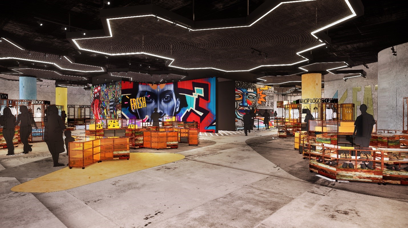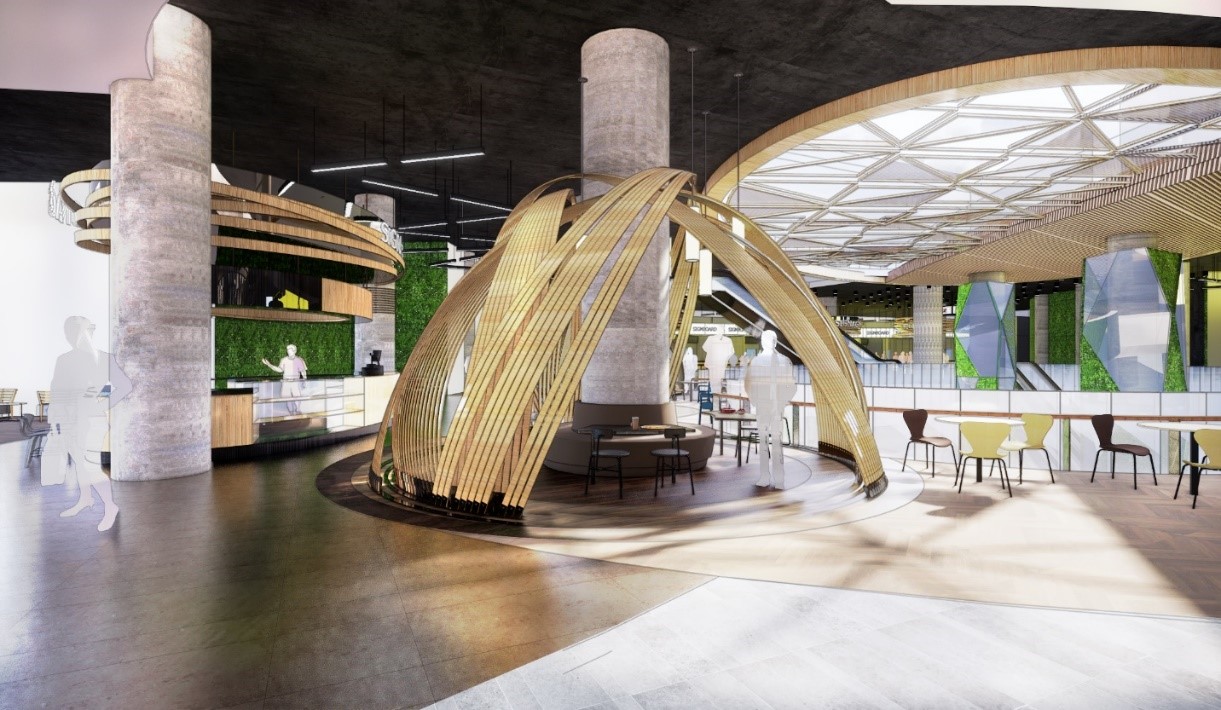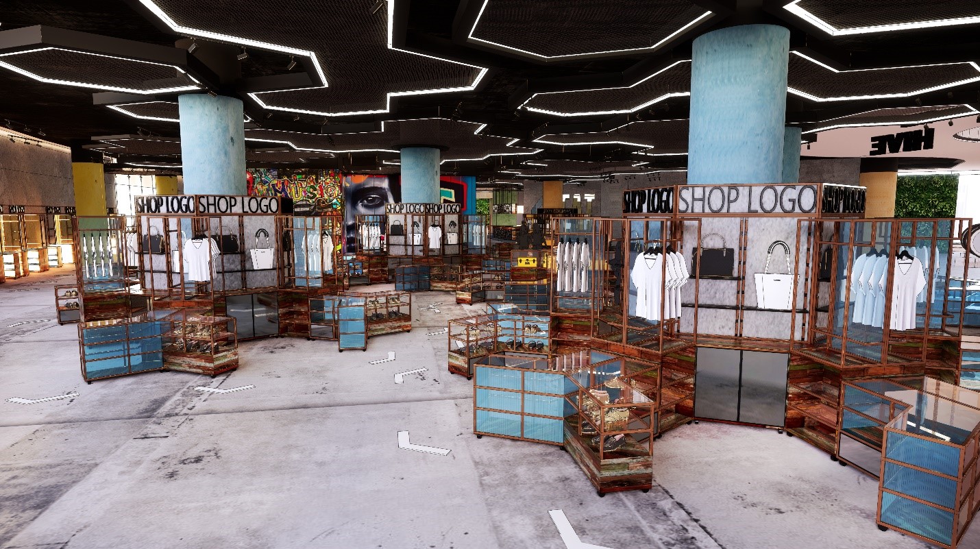 Menara購物中心的核心主題是“自然”。一樓的彈出式商店區靈感來自“蜂巢”,一個年輕的勤勞初創公司在模塊化售貨亭商店中進行貿易。“蜂巢”主題從地板布局到彈出式展臺,從墻壁和天花板設計一應有到。