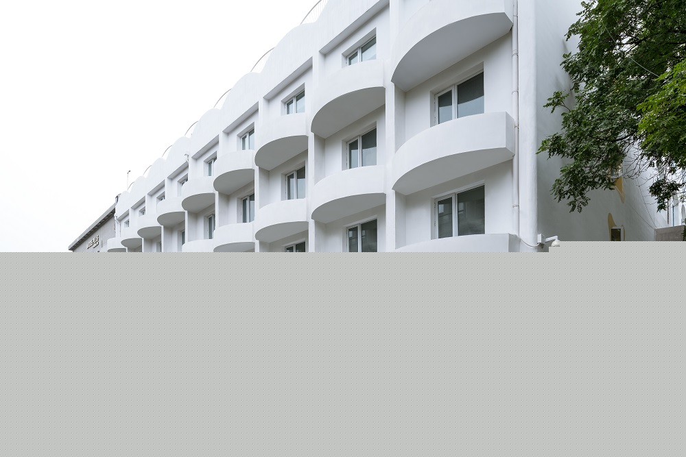 店鋪位于一幢名為”那里花園”的中層建筑地面層的東南轉角。該建筑外立面由一系列白色外凸半圓形體塊造型構成。由于原有外立面門洞無法移位,芝作室將這一限制轉化為契機,將場地現有的光影模式轉譯成為空間概念。